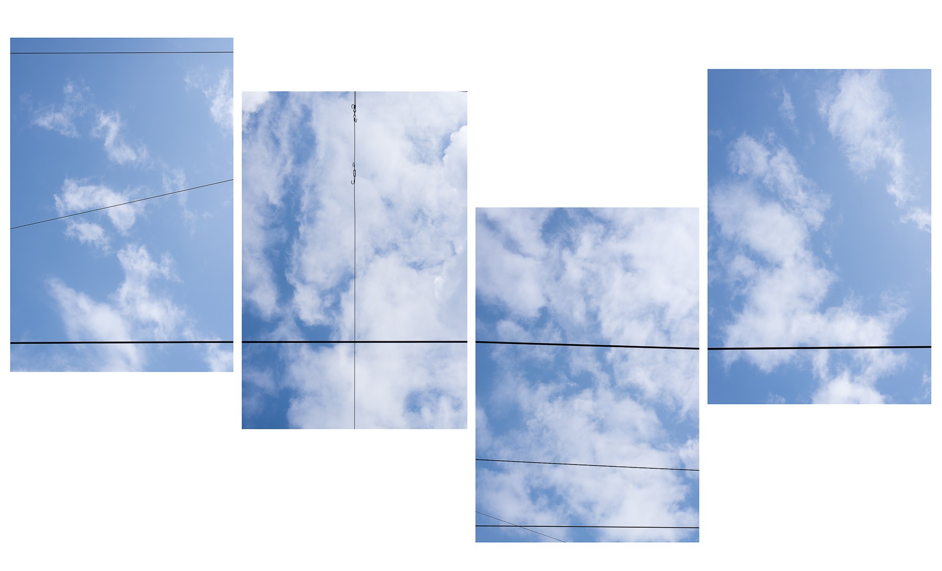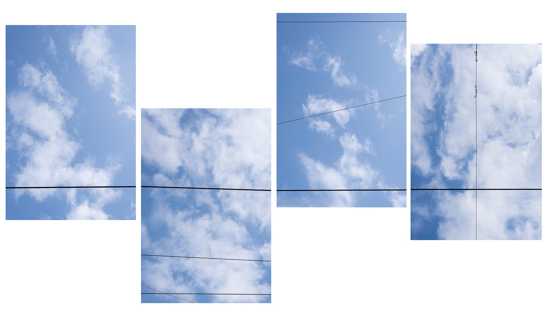 This series was developed for the group exhibition titled “Borderline.” In conceptualizing this work, I explored various ideas until inspiration struck during a walk through the city. I noticed how the view of the sky was frequently interrupted by cables, creating a natural border that piqued my interest.